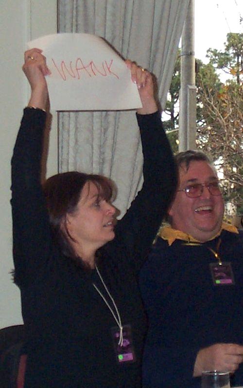 Blankety Blanks was fun as expected. Our compere was George, doing his best Bob Downe impression. Jocko was late and initially replaced by a ring-in. Sweet and demure she looked, especially compared to the dubious characters at the other end of the table. But Fiona McIntosh soon shattered our illusions: