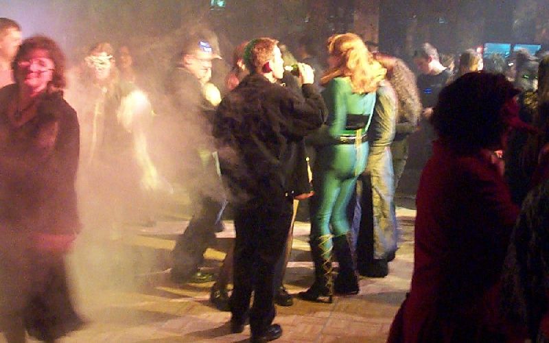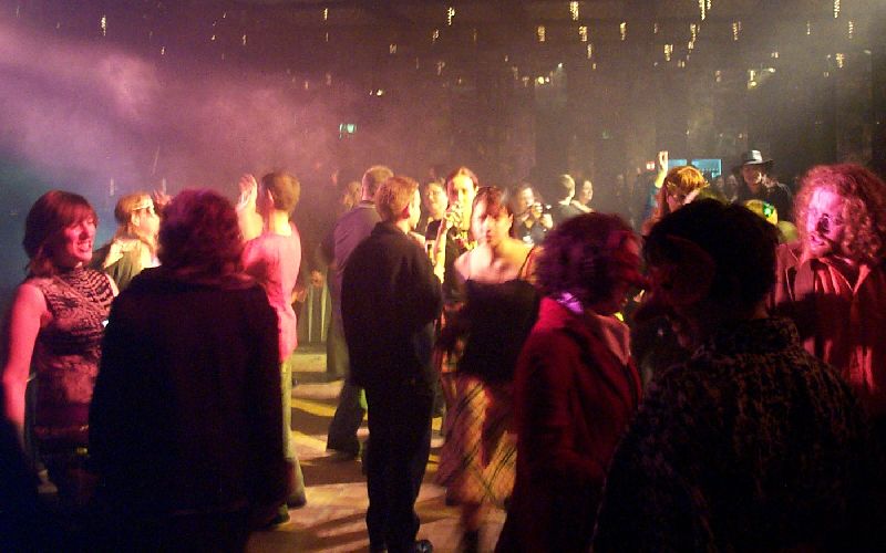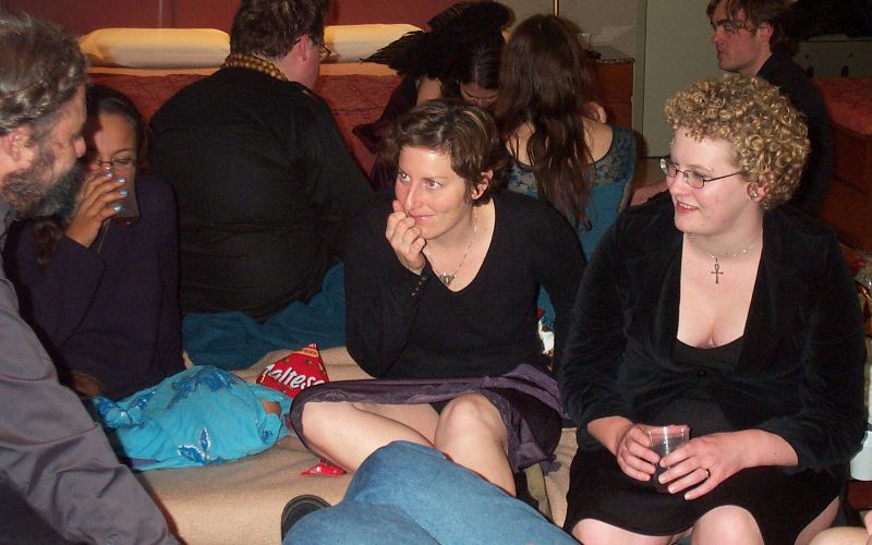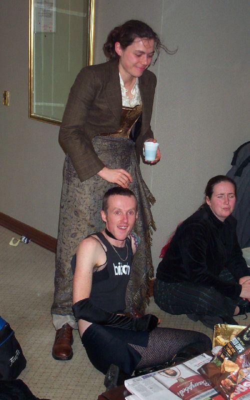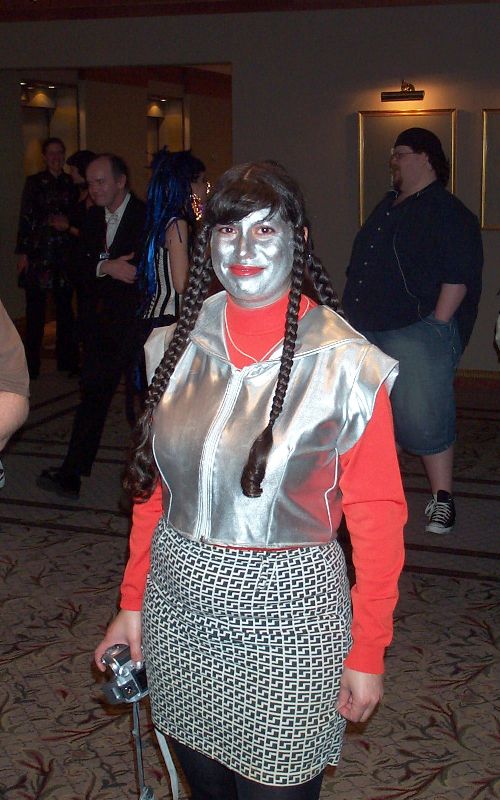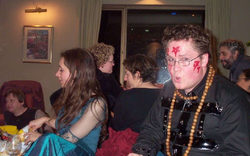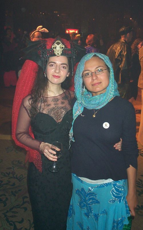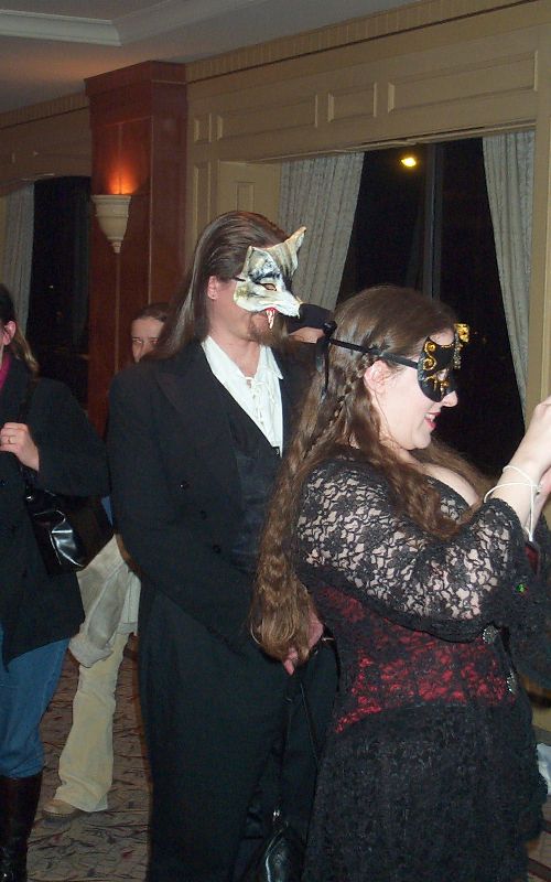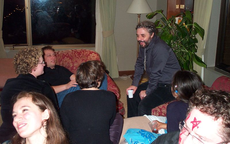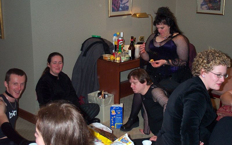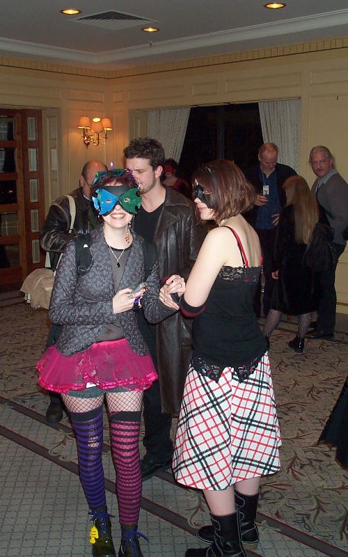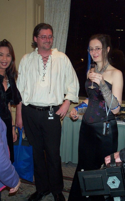 To my knowledge, there were only three room parties Sat night. (Excluding the committee-only party on one of the executive floors.) By the sounds of it, ours was the only one with heaps of space and music. Oddly enough, for a hotel which doesn't appear to encourage room parties, our room had a stereo, so we'd hooked my laptop up to that for random music.