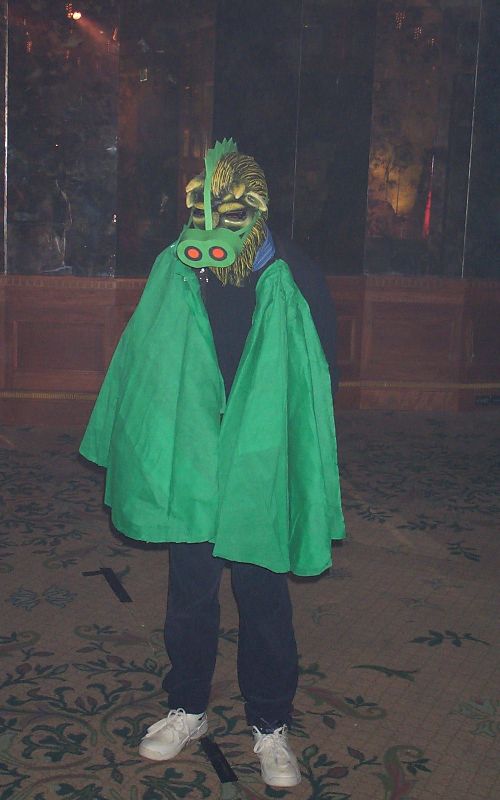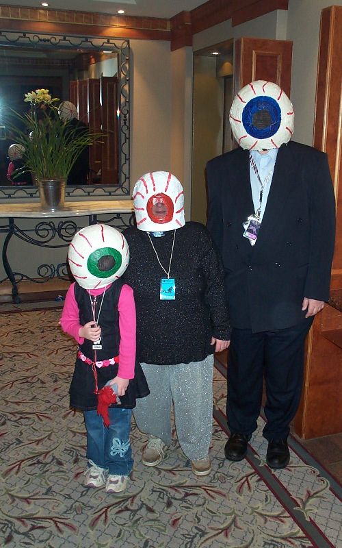 Saturday night's Maskoballo was great, bringing out masses of people in great costumes. Jocko, Jeanette and I reprised the Residents-inspired eyeball costumes of Swancon 21, with Genevieve joining in too. I wonder if Neil, having also been a guest at that Swancon, noticed the mysterious re-appearance?